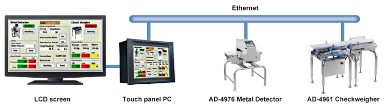 Equipped with Modbus RTU/Modbus TCP as standard. With Modbus communication, seamless connection can be easily achieved. Operations such as stopping and starting weighing, collecting data and changing product can all be set from an external device.