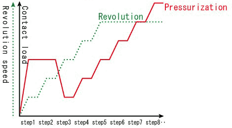 | Control item | – Maximum number of STEPS: 100 (holding time of each step can be selected from seconds, minutes or hours*) – Contact load: 5000N at maximum – Revolution speed: limited value of the tester |