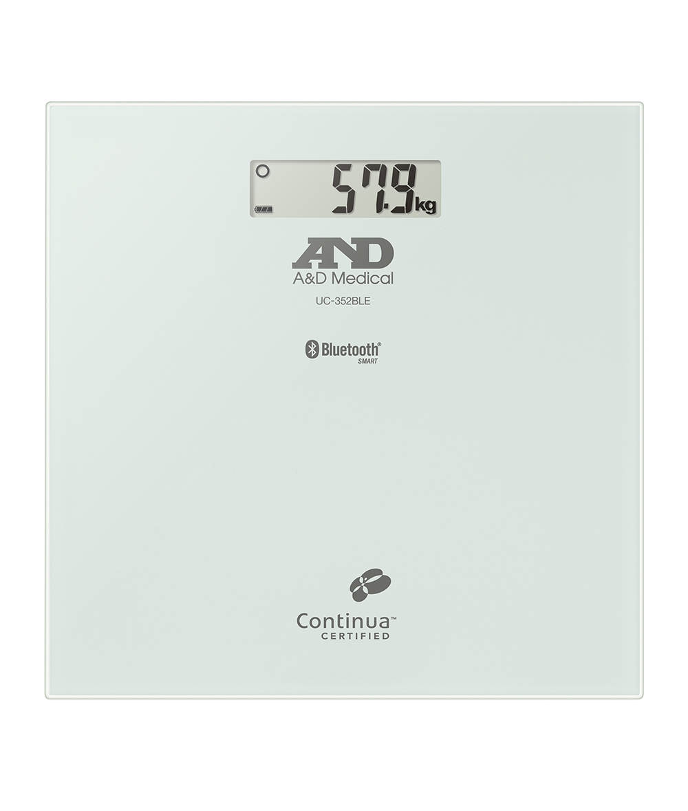 The UC-352BLE is modern, compact design health scale with durable top glass plate. It’s step-on-start feature making it simple to use with no buttons to press. It has 200kg(450lb) capacity, 0-100kg in 100g resolution and 100-200kg in 200g resolution.