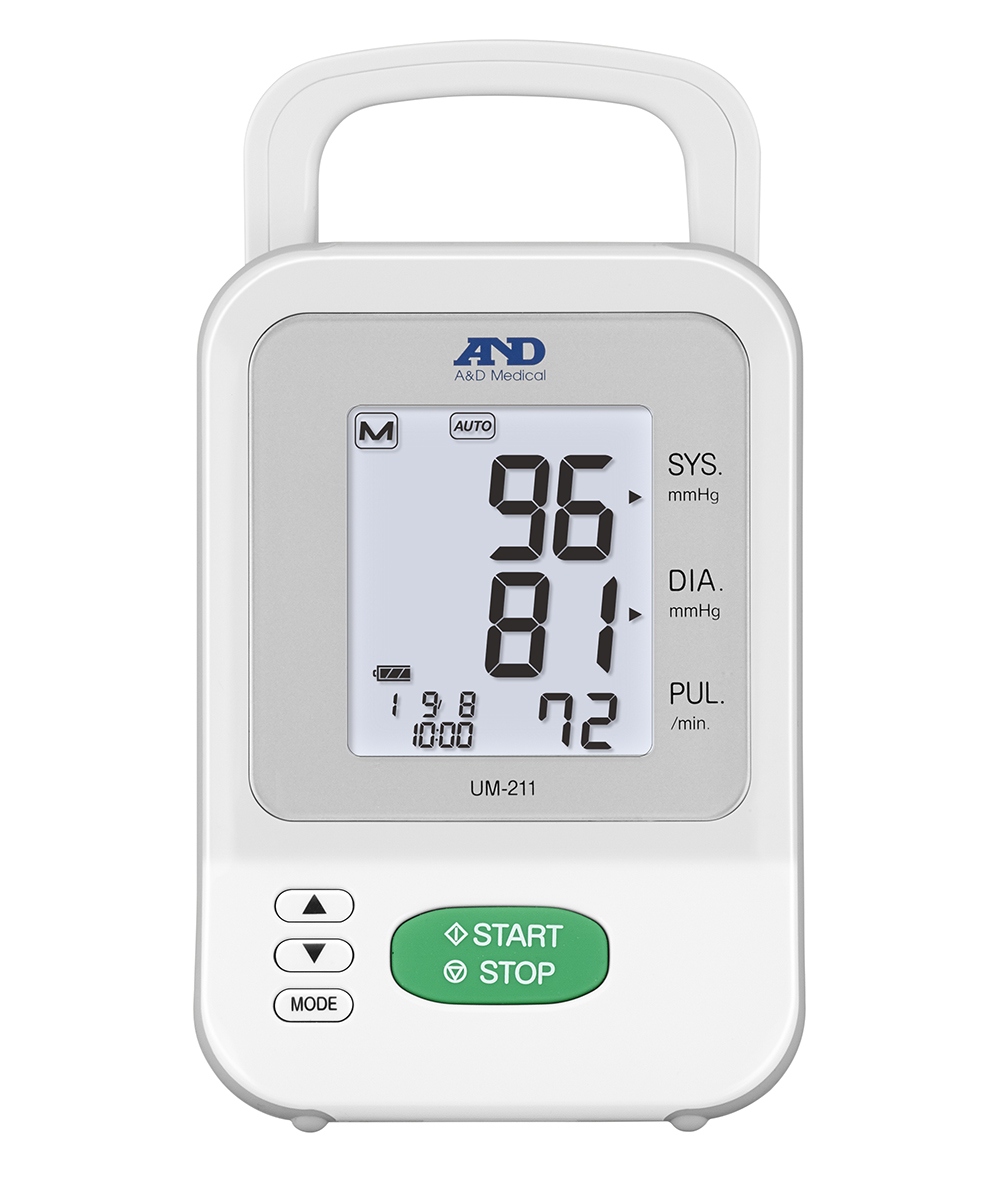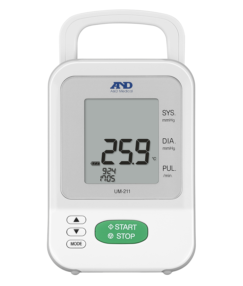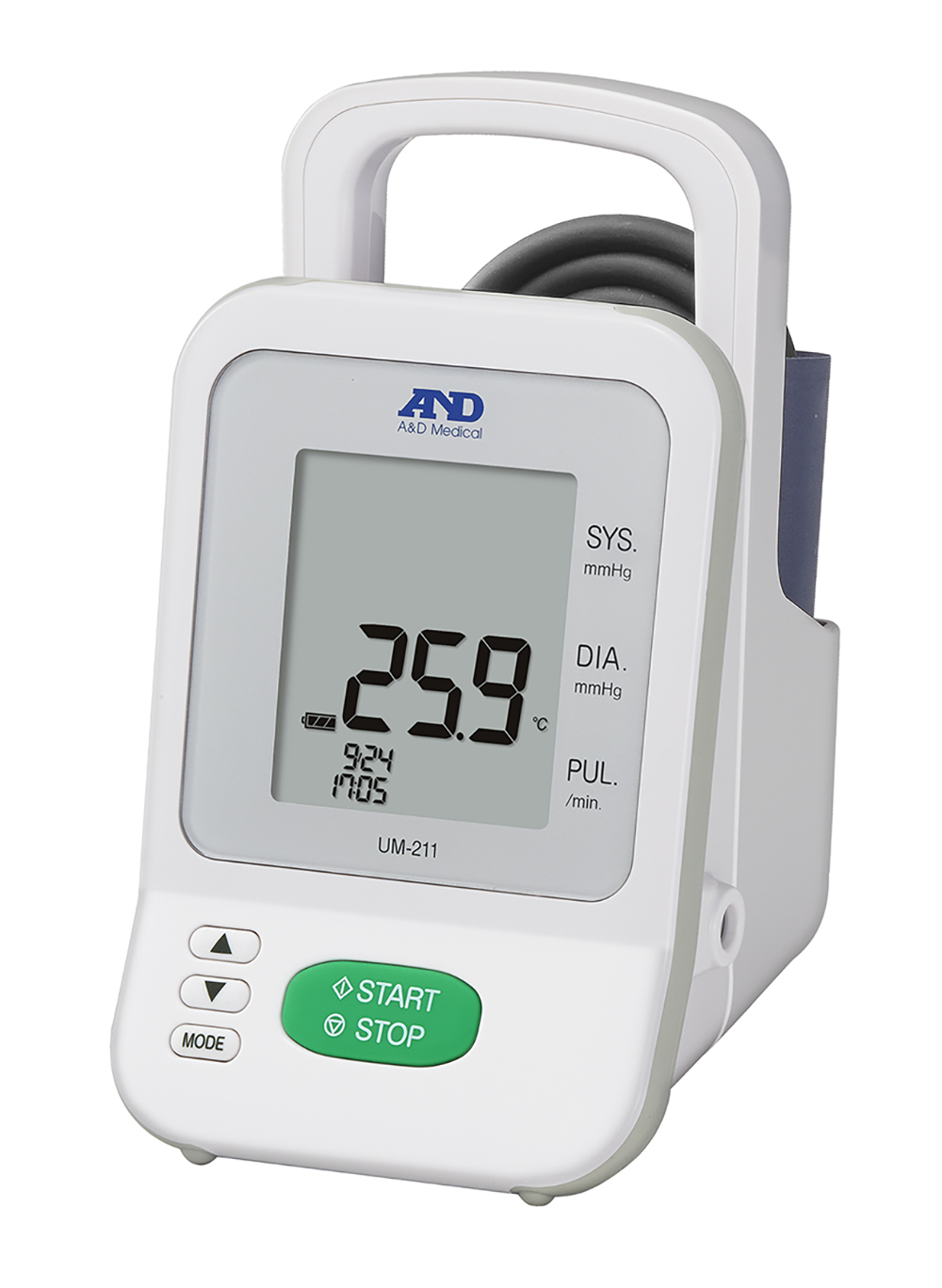 UM-211 is designed for multipurpose use in hospitals. This model is available for dual measurement mode, auscultatory mode with use of the stethoscope and oscillometric mode. UM-211′ s auscultatory mode is designed for daily and frequent use. Selectable deflation speed (2.5mmHg /sec. or 5.0mmHg / sec.) and quick start for auscultatory mode are features ‘Only from A&D’.